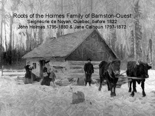 Although, they might have settled near Pike River in the beginning, the first official record of John Holmes in Canada was in the Noyan Seigneurie in 1854. Their arrival would have been before 1822 when son John was born.